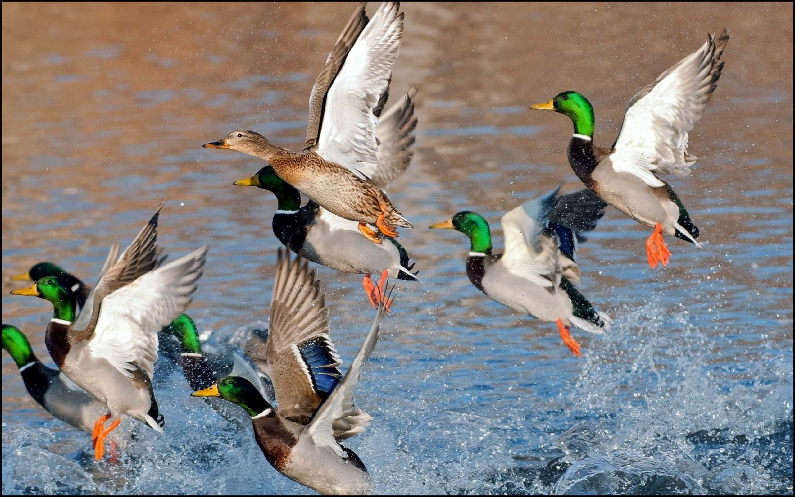 Flying Out Of Water Duck Hunting Desktop Wallpaper -
