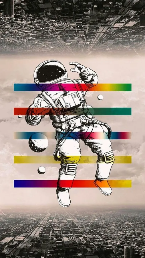 Related An Astronaut Is Flying Over A City With Colorful Stripes Wallpaper
