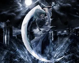A Lone Emo Anime Boy Stares Into The Dark Night. Wallpaper -