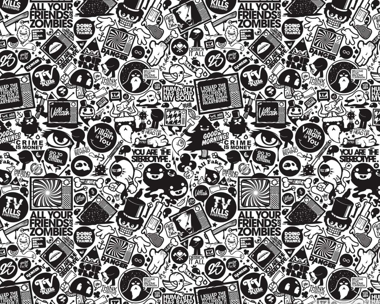 A Black And White Drawing Of A Lot Of Different Things Wallpaper -