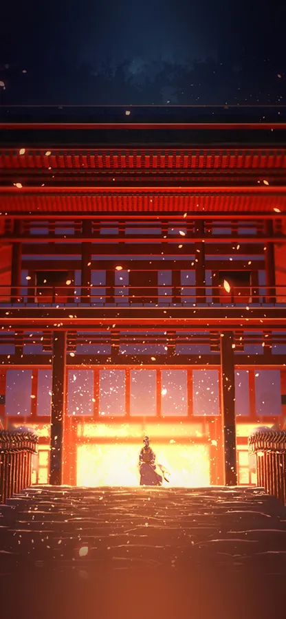 A Vibrant Red Anime Wallpaper Featuring An Iphone 11 Wallpaper -