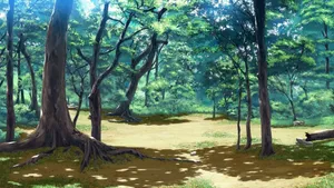 Get Lost In The Beauty Of This Anime-inspired Forest. Wallpaper -