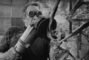 "anthony Quinn Engrossed In Welding Artistry - Workshop Scene" Wallpaper -
