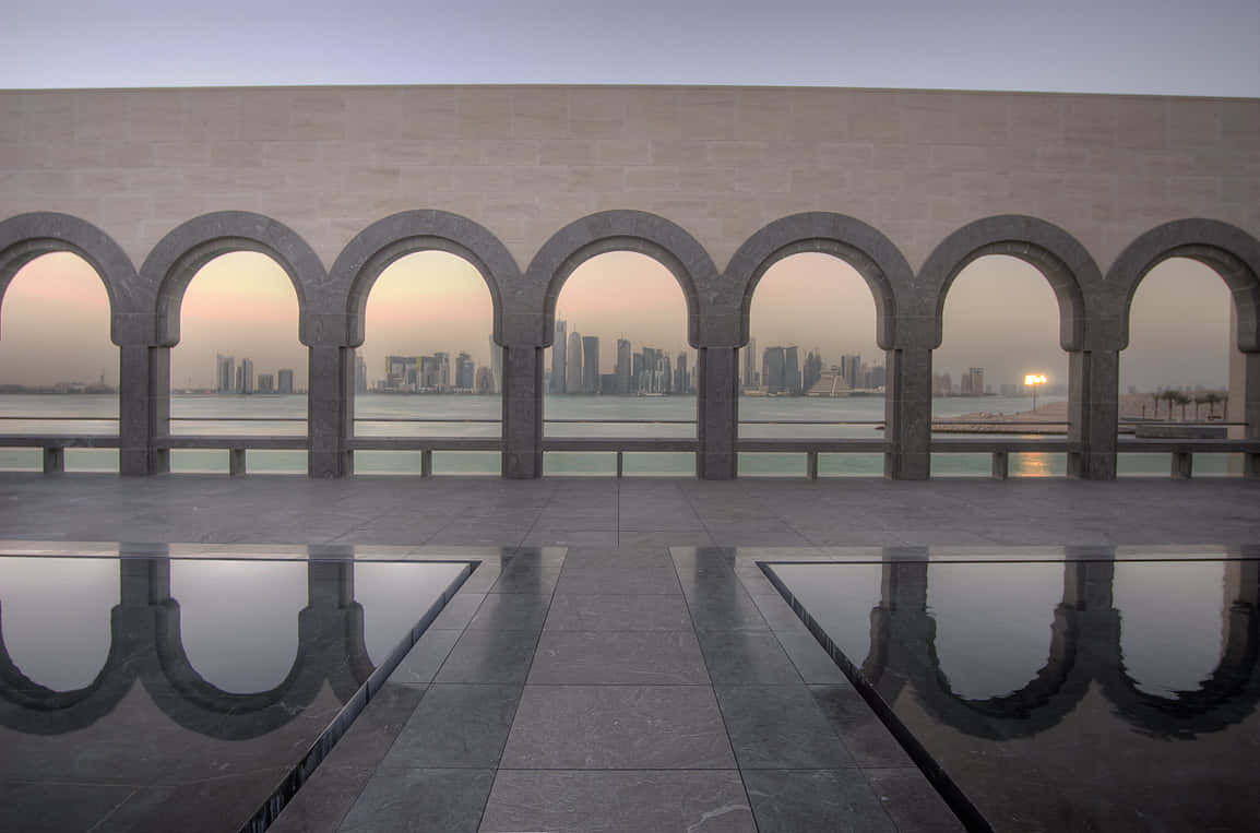 Archways Framing City In Museum Of Islamic Art Wallpaper -