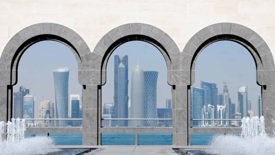 Archways Framing City In Museum Of Islamic Art Wallpaper -