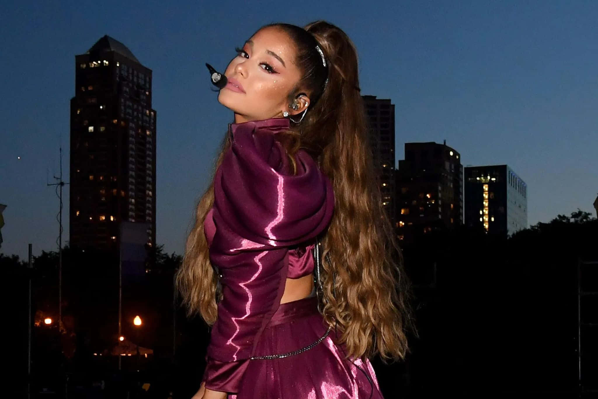 Ariana Grande Purple Outfit Performance Wallpaper -