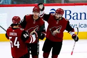 Clayton Keller Arizona Coyotes Celebrate Score Wallpaper -