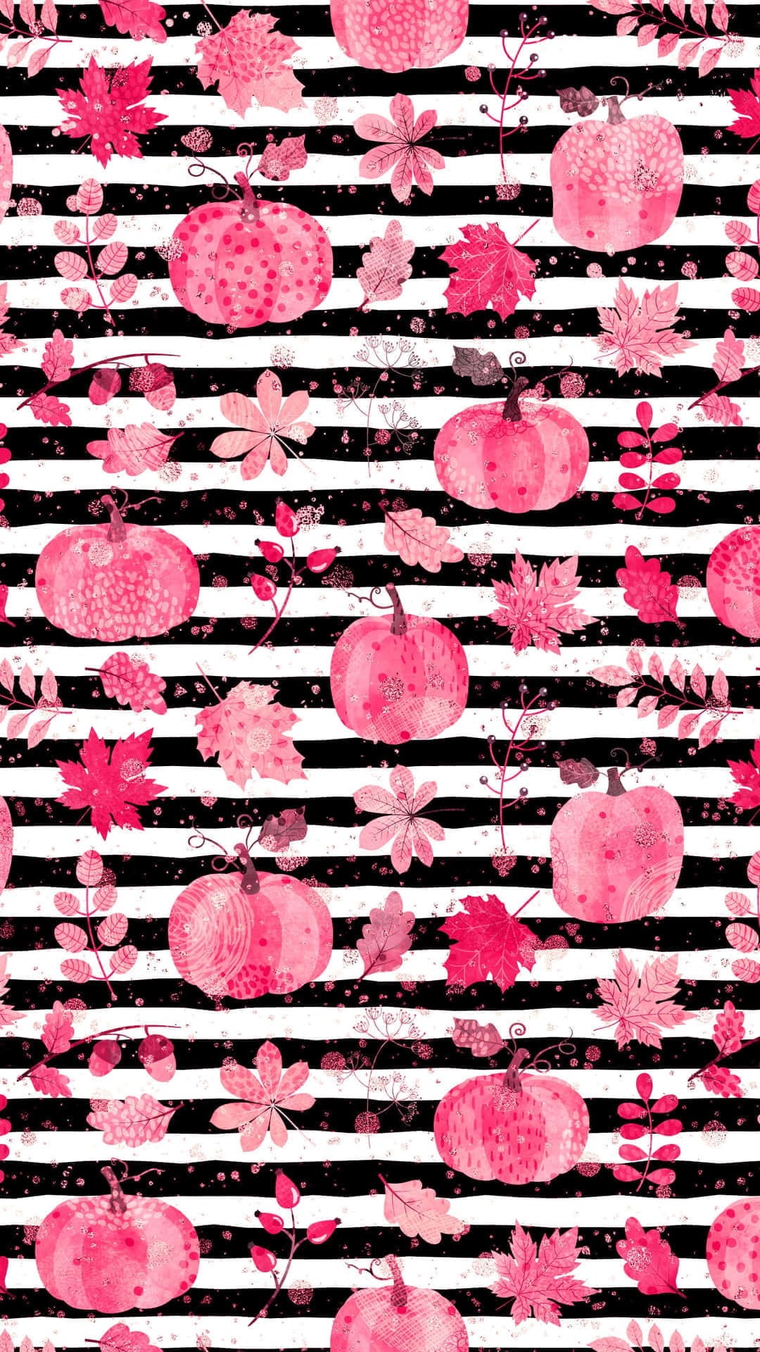 Autumn Pumpkin Pattern Black Stripes Wallpaper