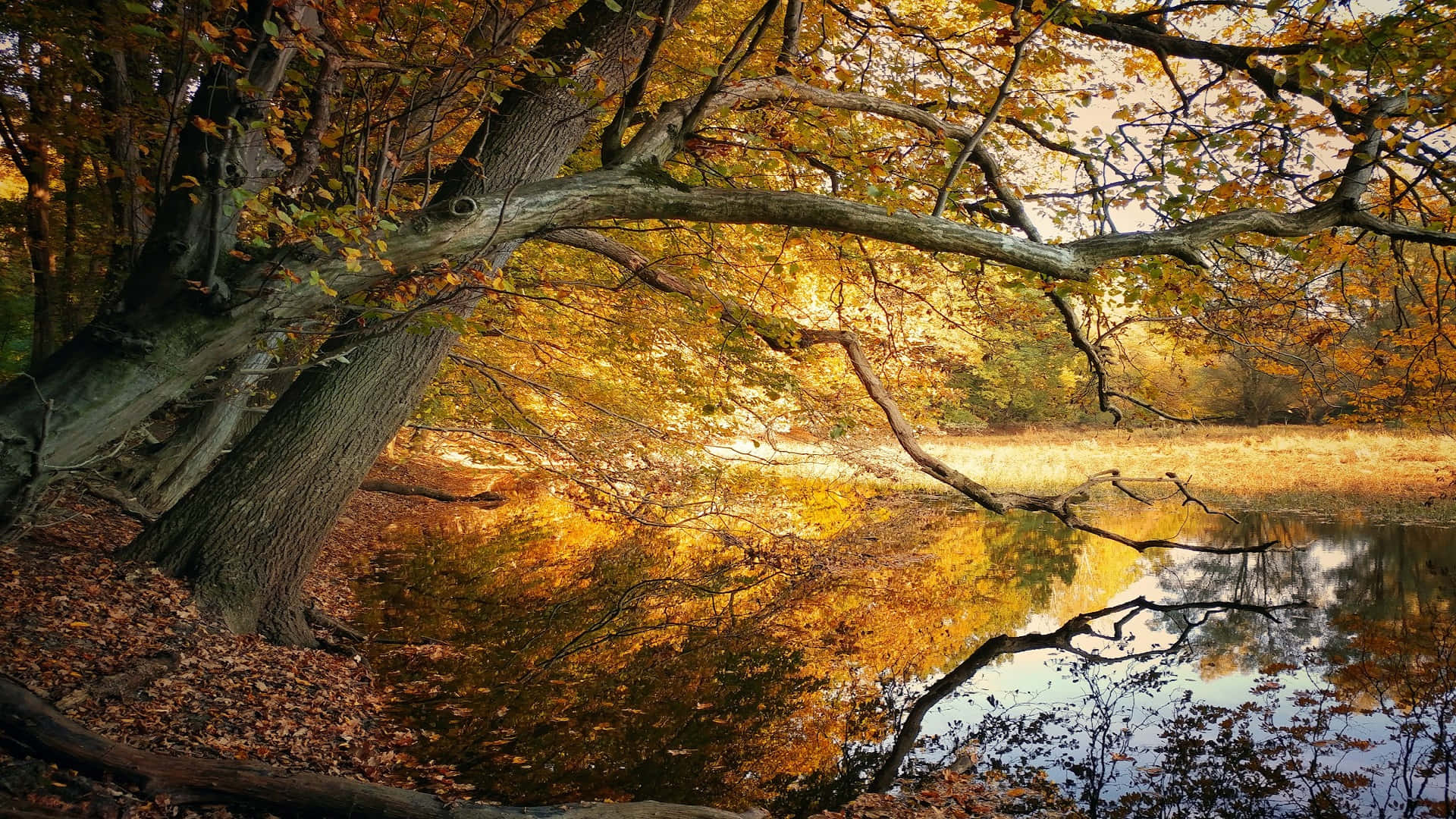 Autumn Leaves Over Pond Wallpaper Wallpaper -