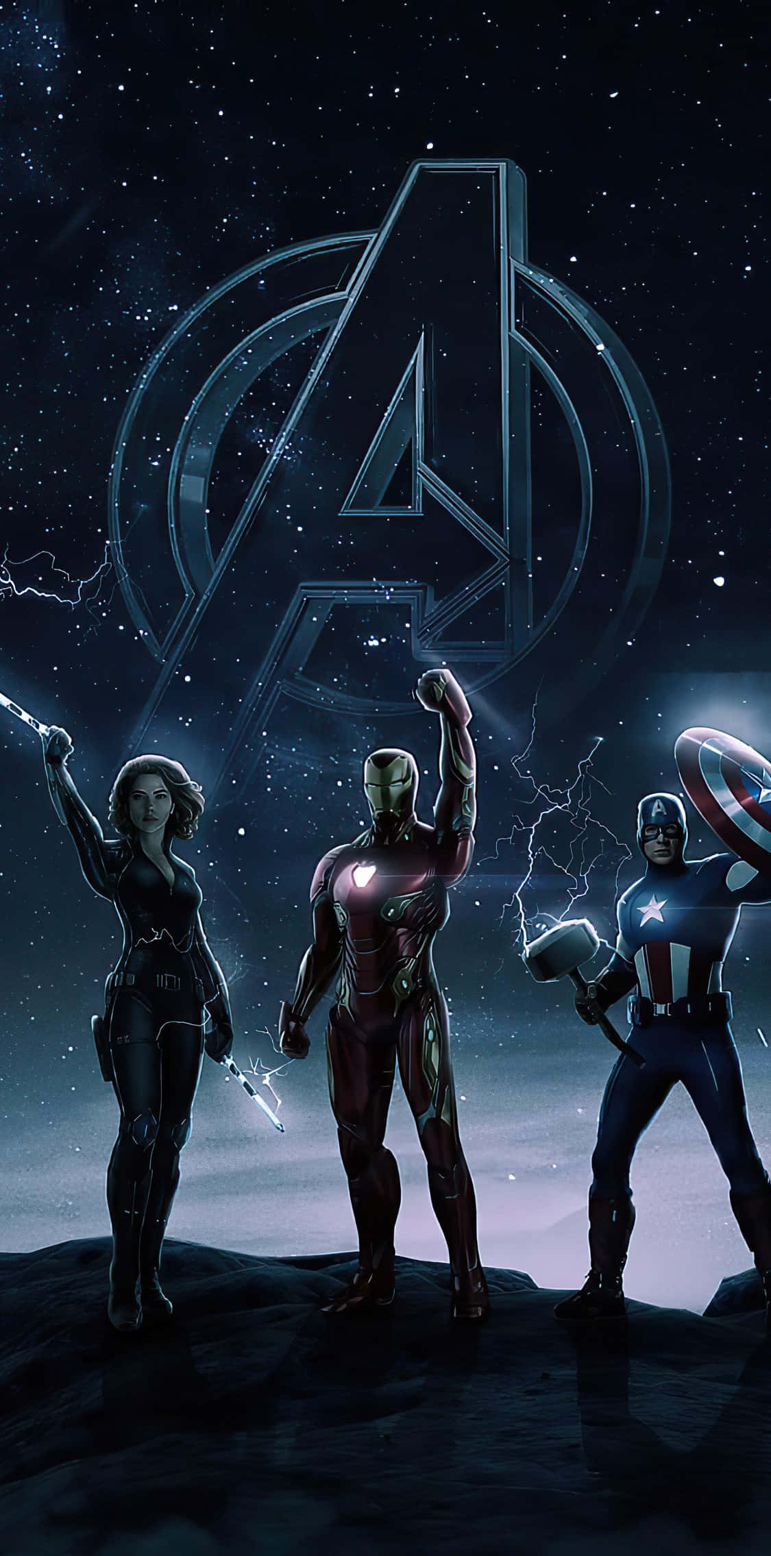 Avengers Characters Standing In Front Of A Starry Sky -