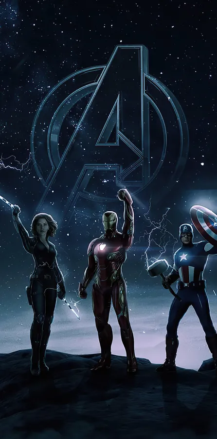Related Avengers Characters Standing In Front Of A Starry Sky Wallpaper