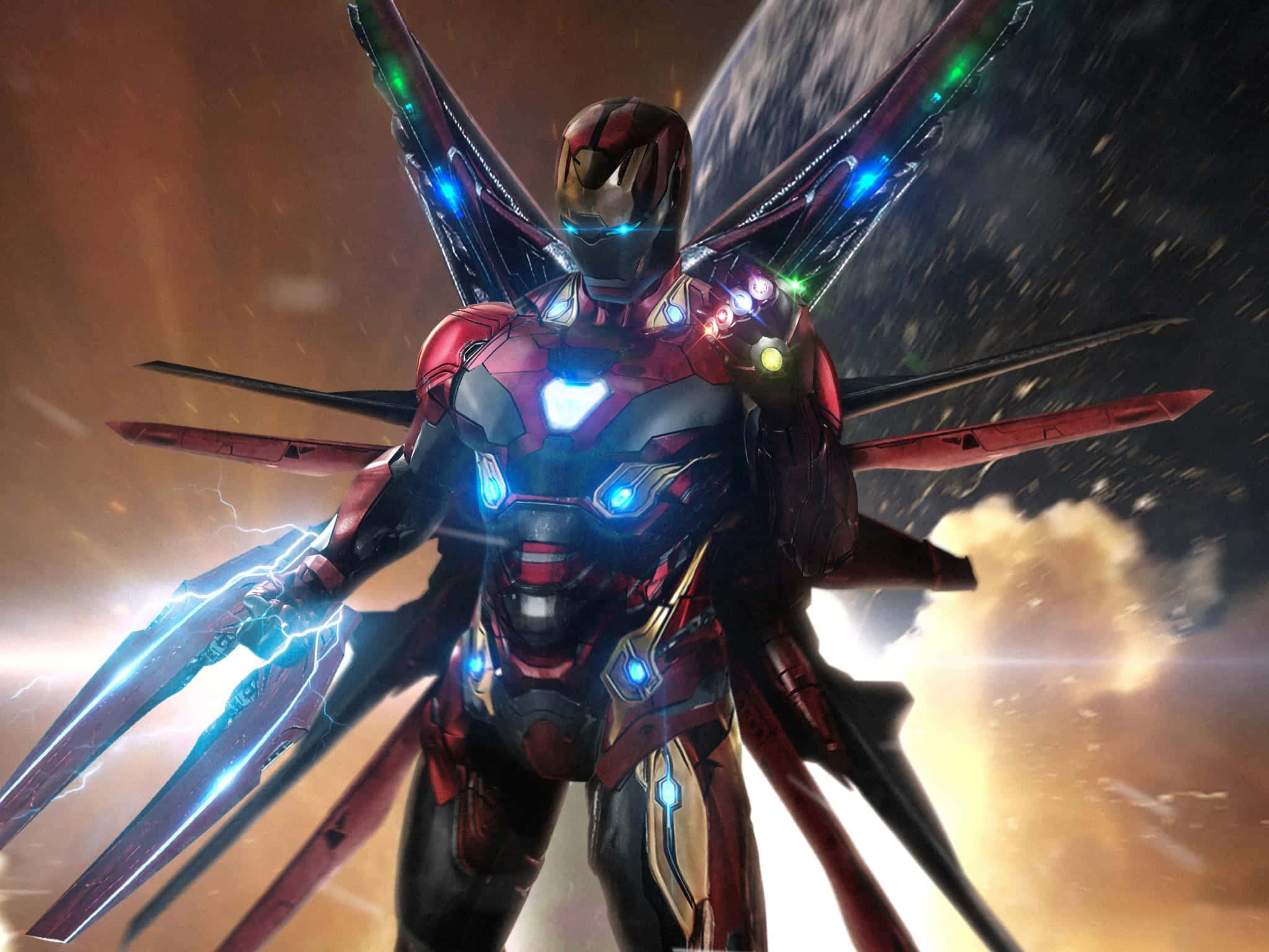 Avengers Iron Man With Infinity Stones In Nano Tech Wallpaper -