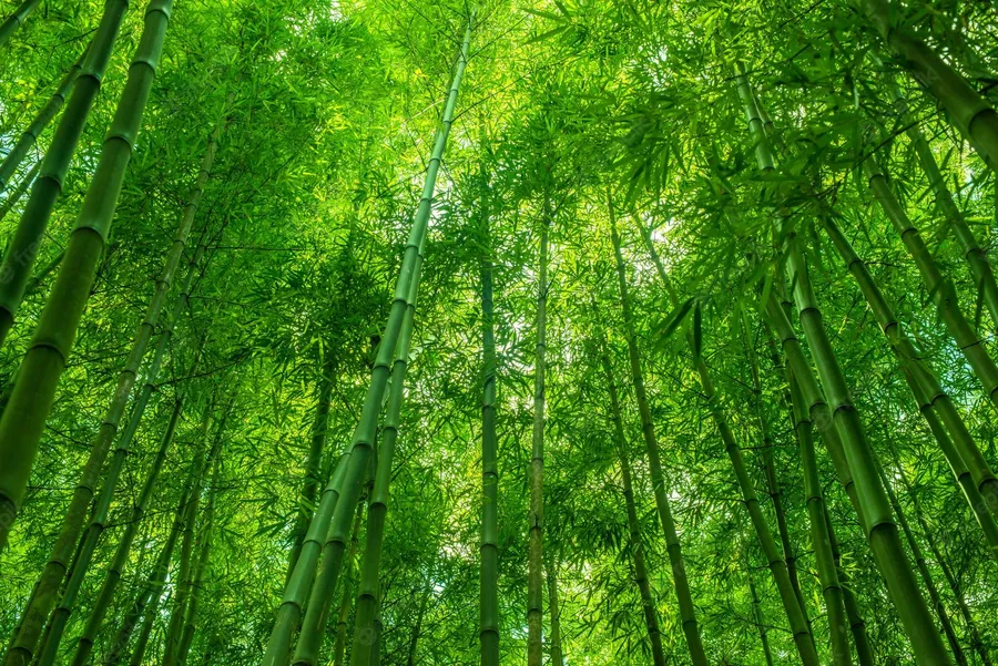 Bamboo Forest With Green Trees And Sunlight Wallpaper
