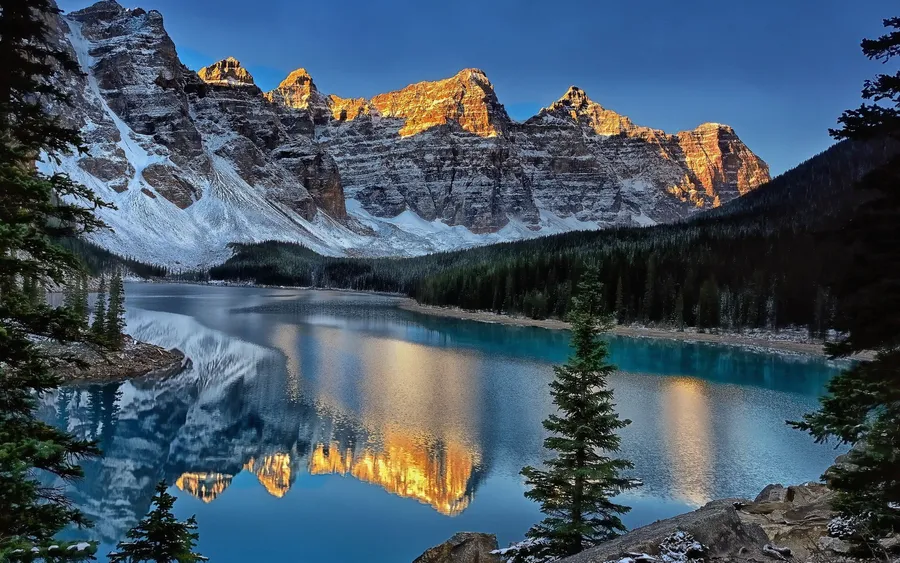 Banff National Park White Mountains And Blue Lake Wallpaper -