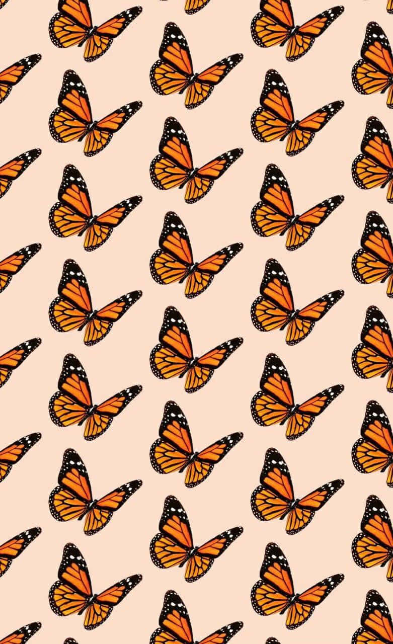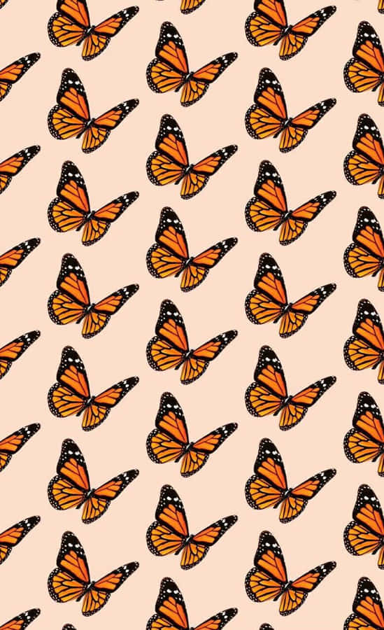 A Large Group Of Monarch Butterflies Flying In The Sky Wallpaper -
