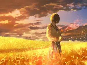 Feel The Peacefulness Of This Anime Sunset. Wallpaper -