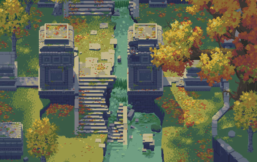 A Beautiful Pixel Landscape Featuring A Vibrant Pathway Through An Enchanted Forest Wallpaper -