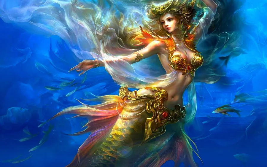 A Beautifully Tailed Mermaid Swims In The Sea Wallpaper -