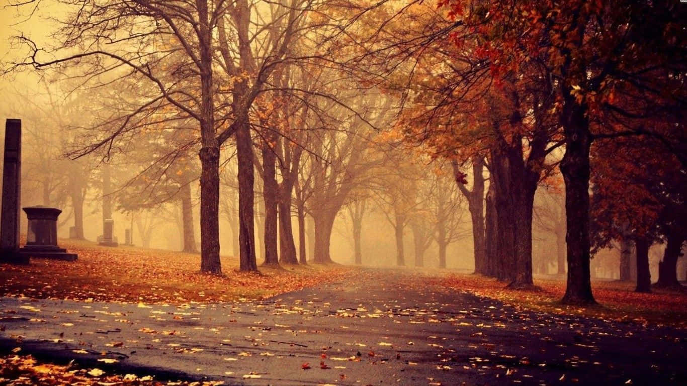 Beautiful Scenery Desktop Golden Tree Lane Wallpaper -