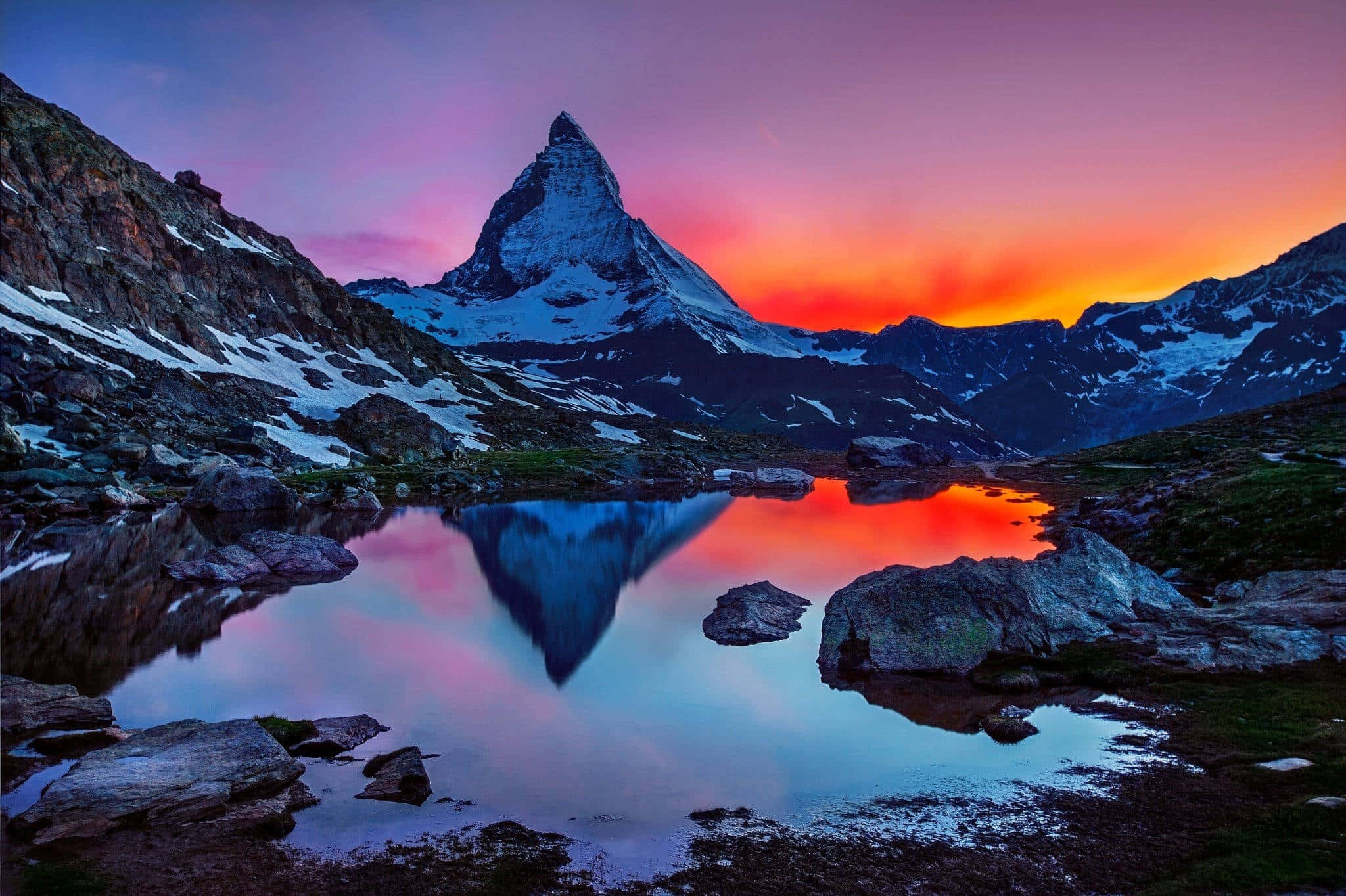 Red Sunset On The Matterhorn Mountain Peak Wallpaper -