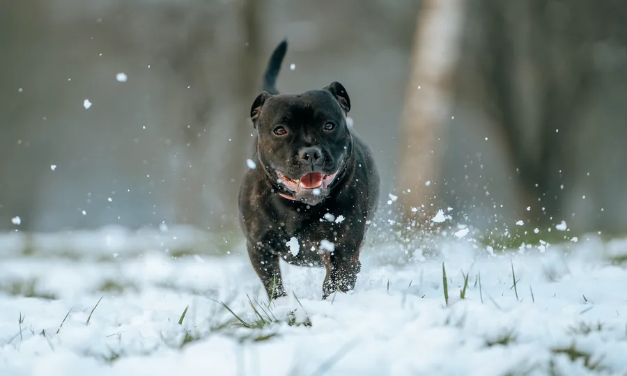 Black Pitbull Enjoying The Snow Wallpaper -