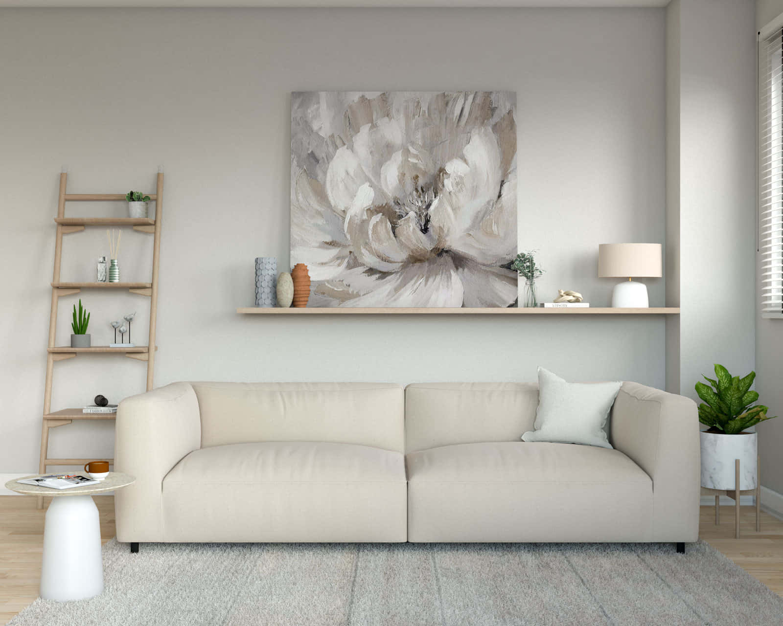 Minimalistic Long White Couch In A Modern Living Room Wallpaper -