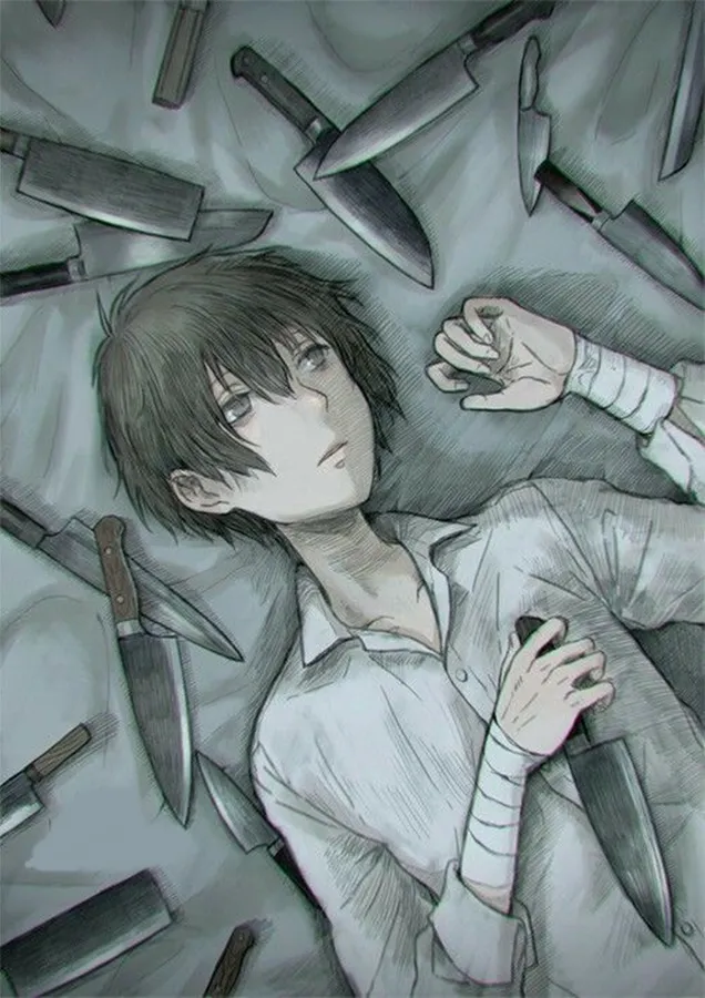 Depressed Anime Boy Bleeding Heart Wallpaper -