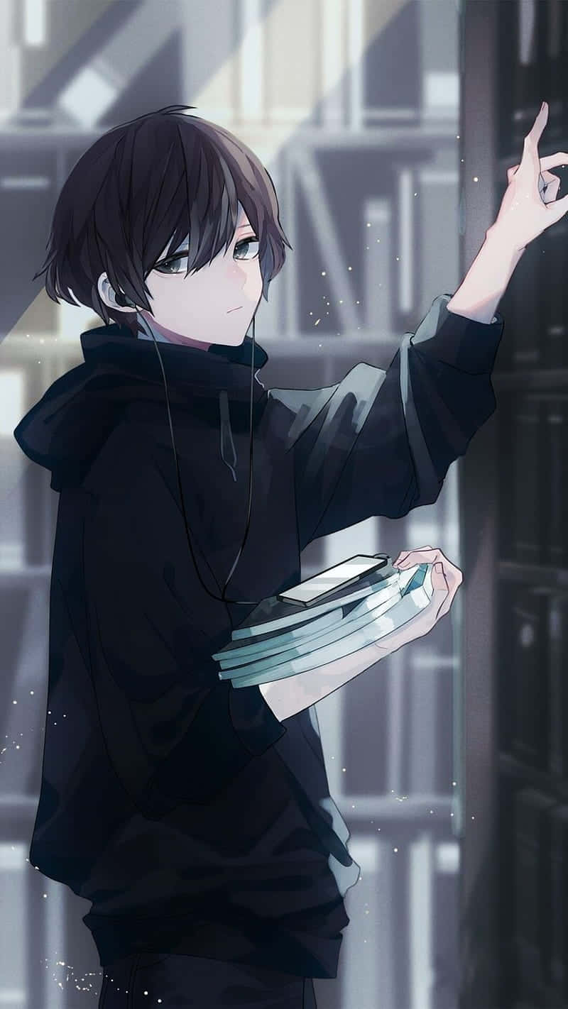 Black Anime Pfp Boy With Books Wallpaper -