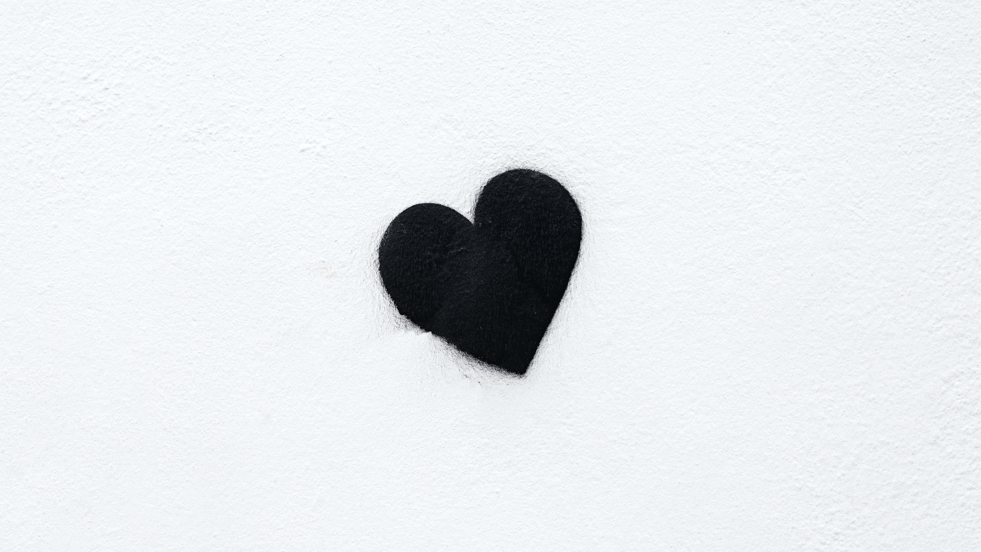 Black Heart Shadowon White Wall_4 K B W Wallpaper -