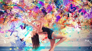 A Painting Of A Woman With Colorful Paint Wallpaper -