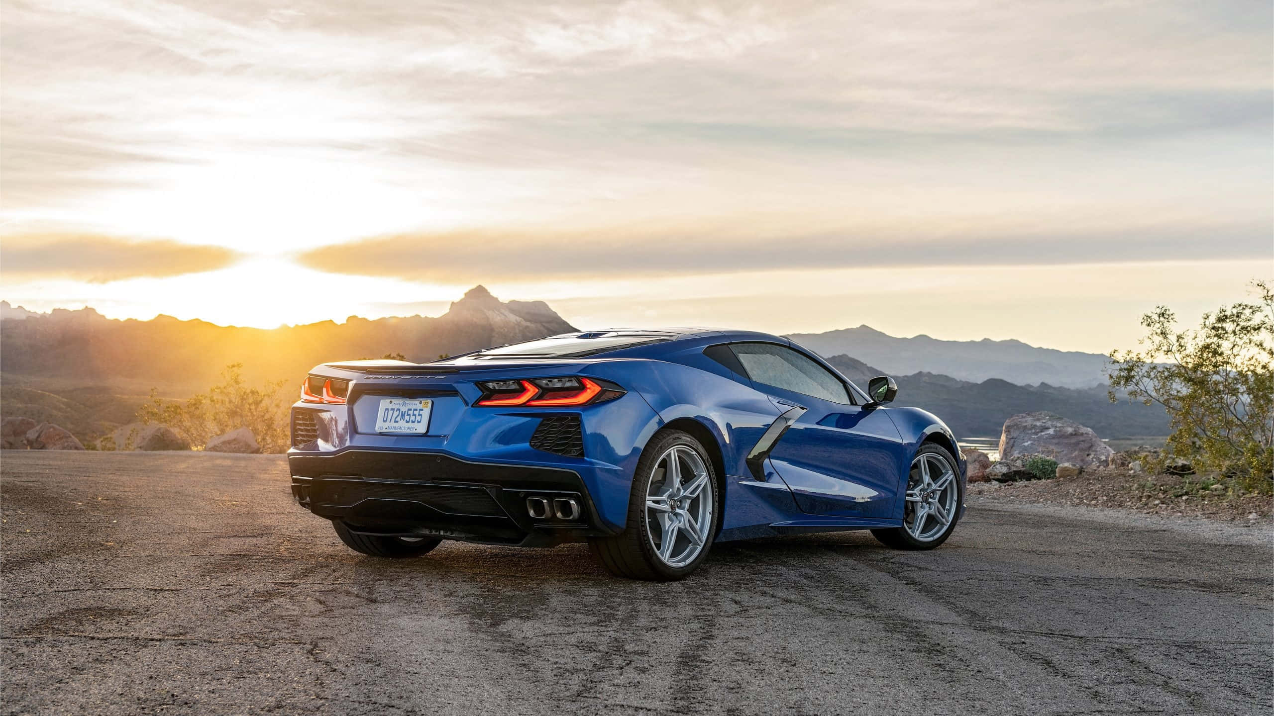 Related Blue Corvette C8 Sunset Backdrop Wallpaper