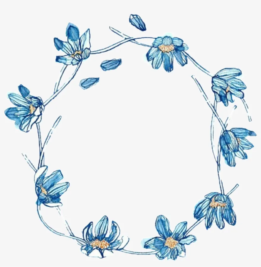 Blue Flowers In A Circle On A White Background -