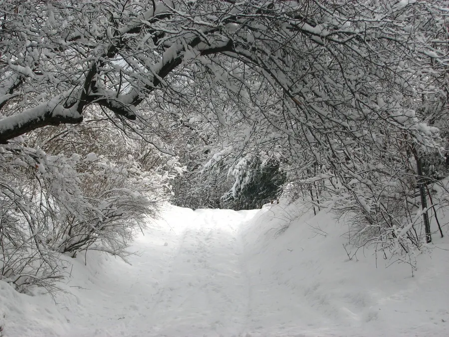 Enjoy The Tranquility Of The Snow-covered New Hampshire Paths Wallpaper -