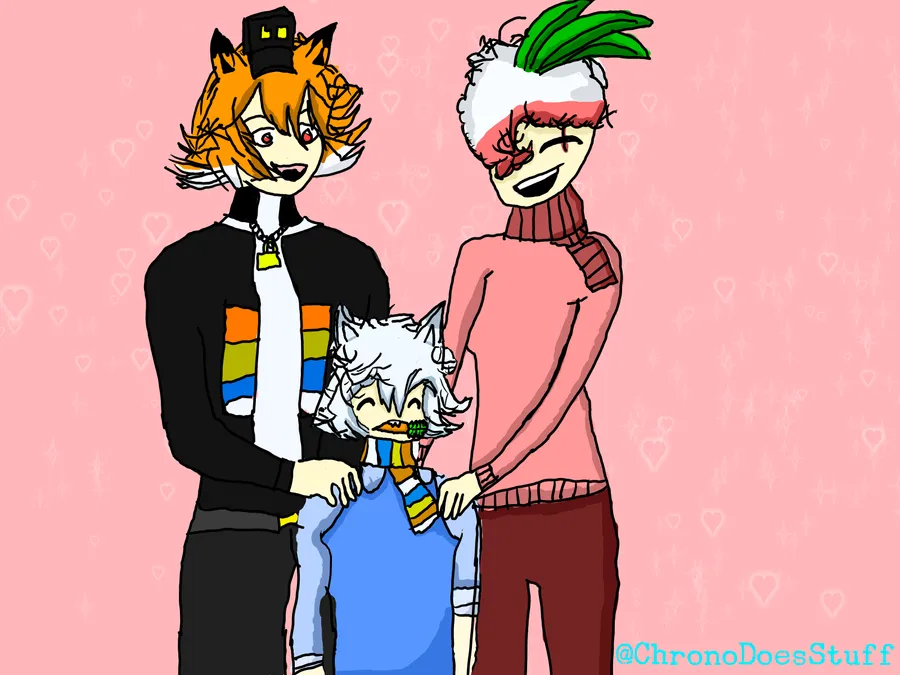 A Group Of People With A Phone And A Cartoon Character Wallpaper -