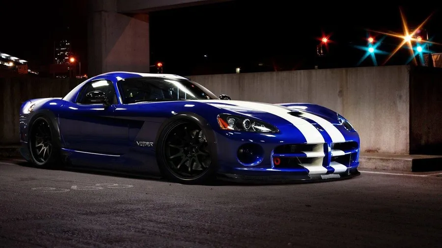 Blue Dodge Viper Parking Lot Wallpaper -