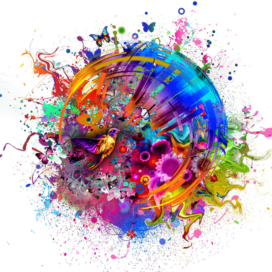 A Colorful Painting With Paint Splatters On It Wallpaper -