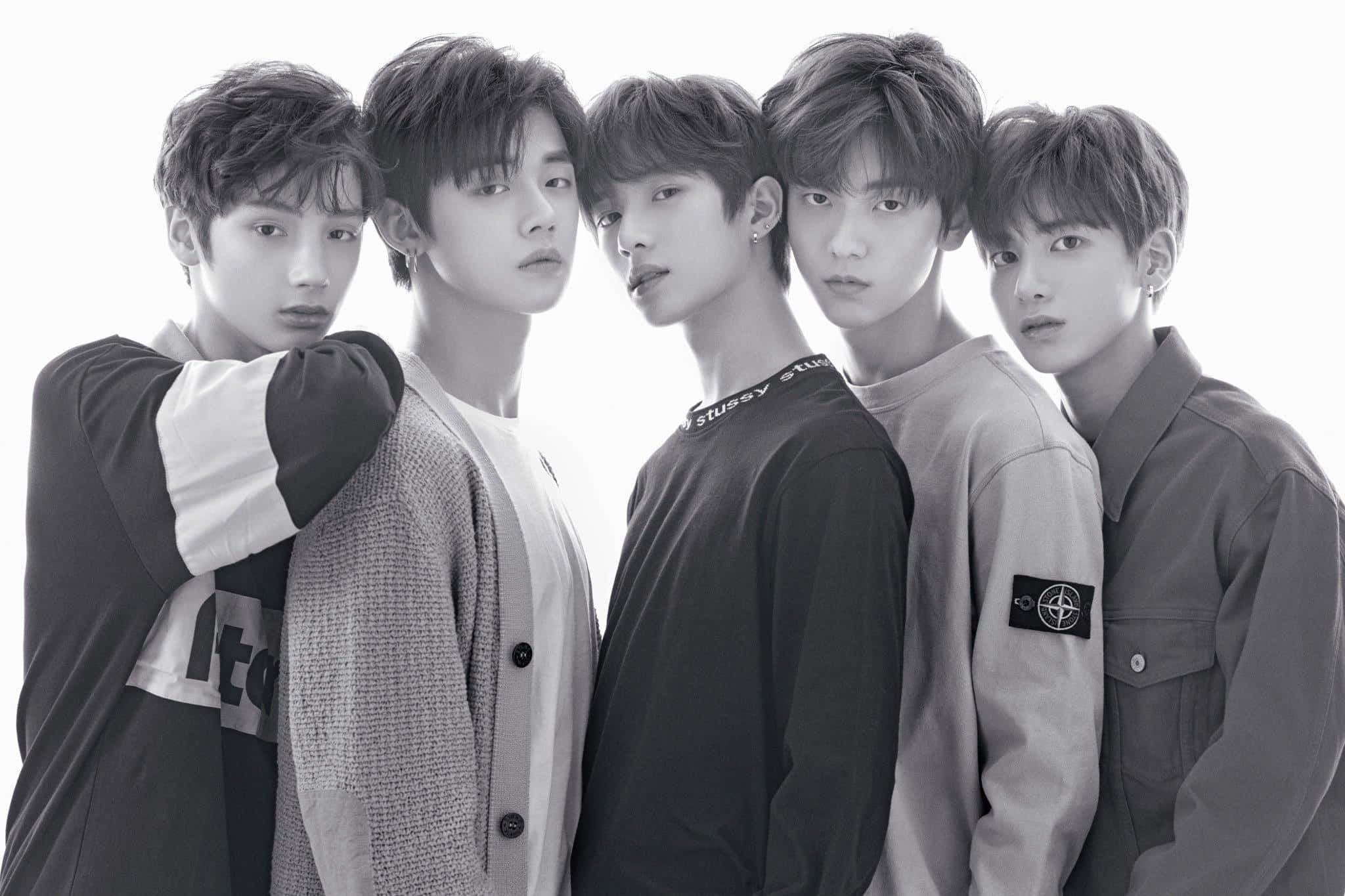 A Group Of Young Men Standing In Front Of A White Background Wallpaper -