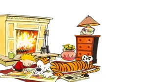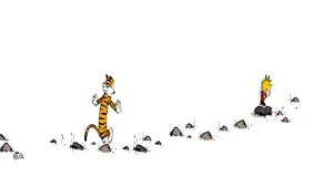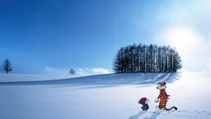 Calvin And Hobbes 4k Snow Sledding Wallpaper