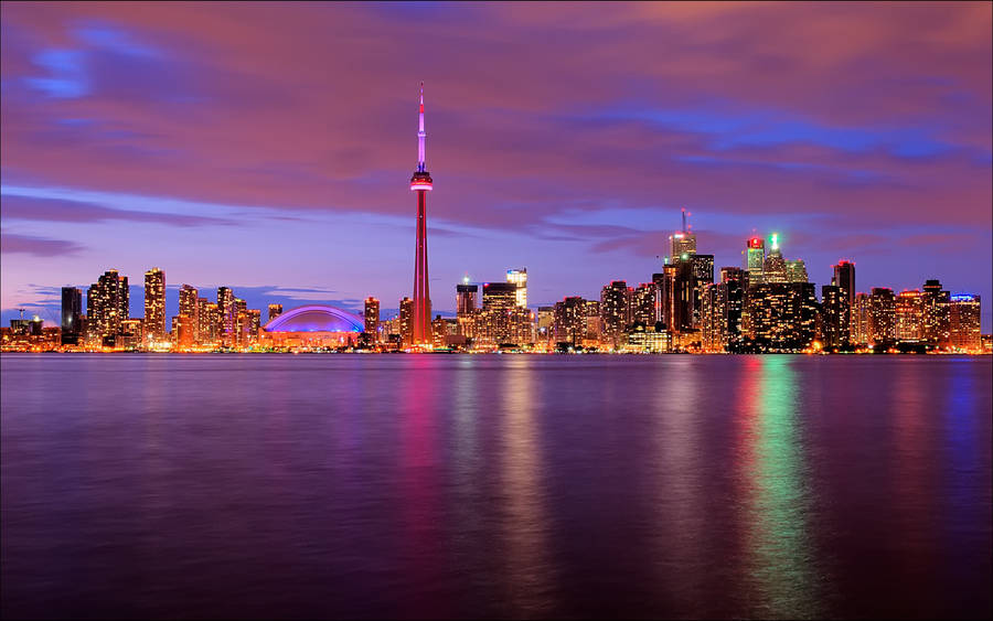 Beautiful View Of The Cn Tower With Canadian Flag Waving Proudly Wallpaper -