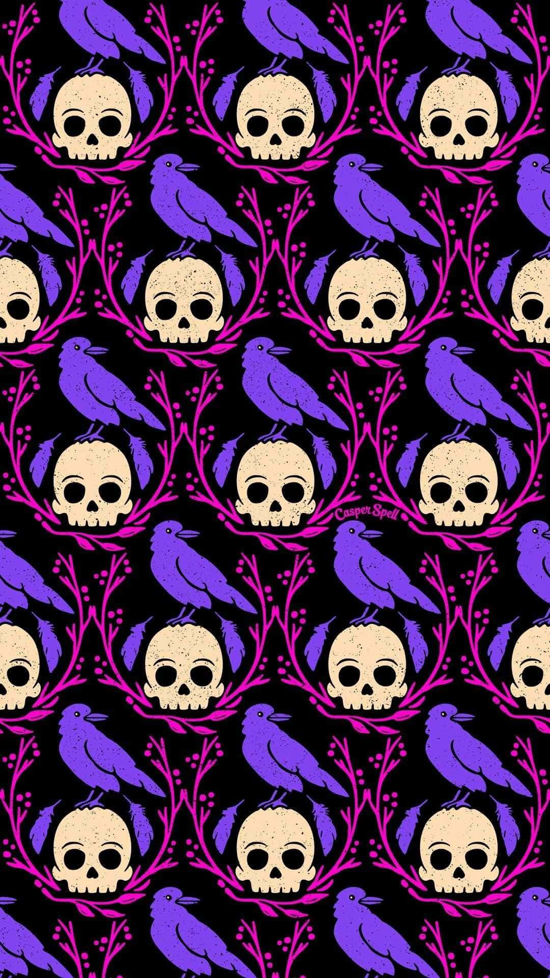 Purple Gothic Skeleton Heads Wallpaper -