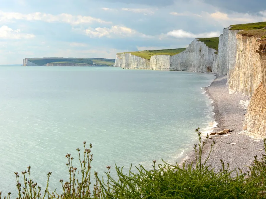 White Cliffs Of Dover Under The Cloudy Sky Wallpaper -