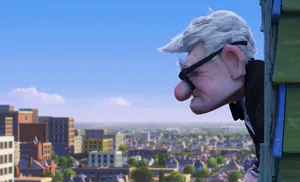 Carl Annoyed From Russel Playing Trumpet In Up Movie Wallpaper -