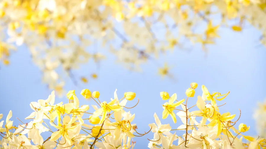 Cassia Fistula Yellow Aesthetic Flower Desktop Wallpaper