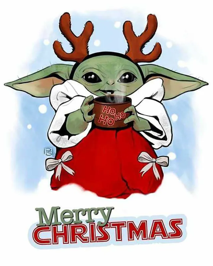 Cute Baby Yoda Christmas Drawing Wallpaper -