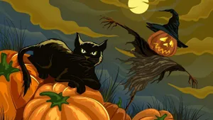 Celebrate Halloween With A Black Cat Spirit! Wallpaper -