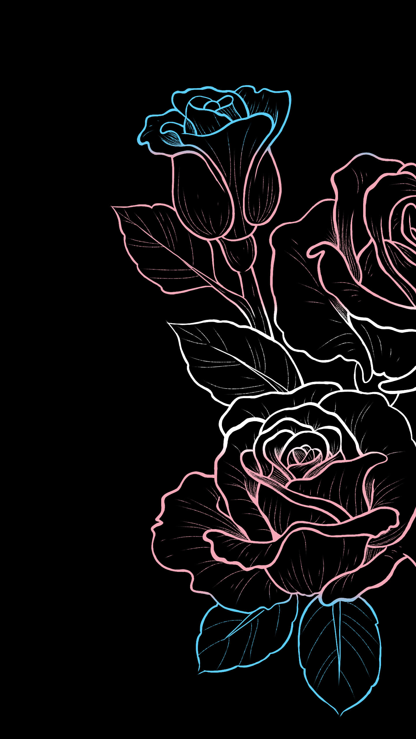 A Black And White Abstract Pattern With Pink And Blue Lines Wallpaper -