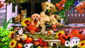 Sleeping Dog Cute Halloween Desktop Wallpaper -