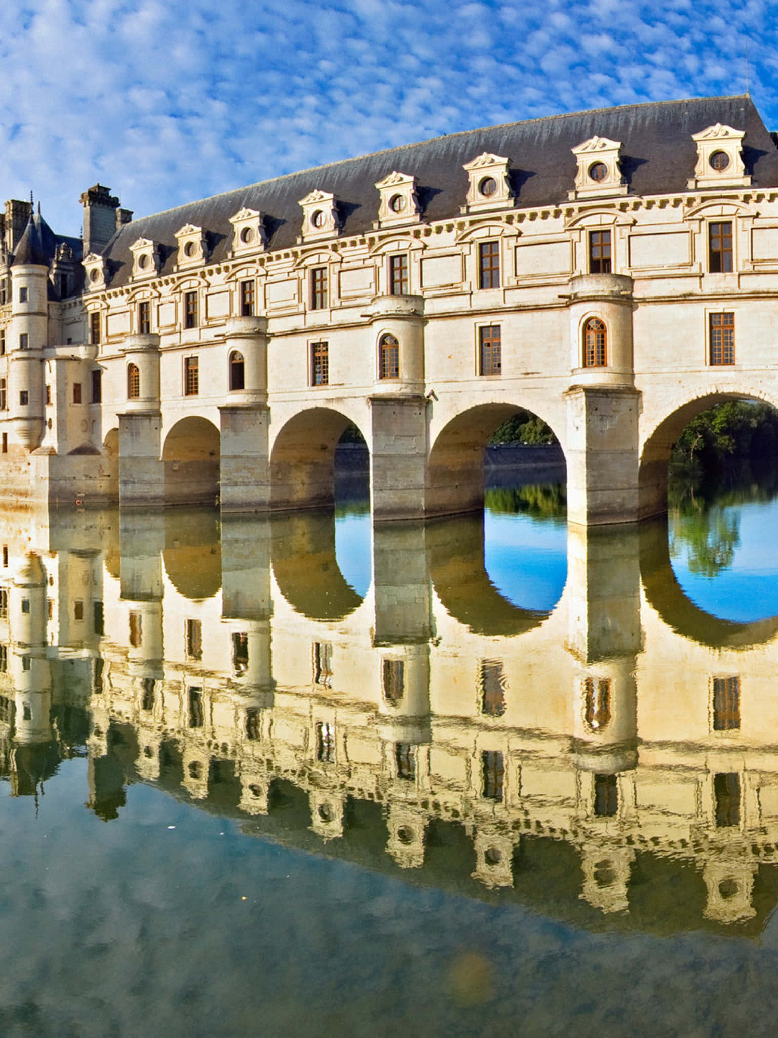 "chenonceau Castle Reflecting In The Serene River At Dusk" Wallpaper -