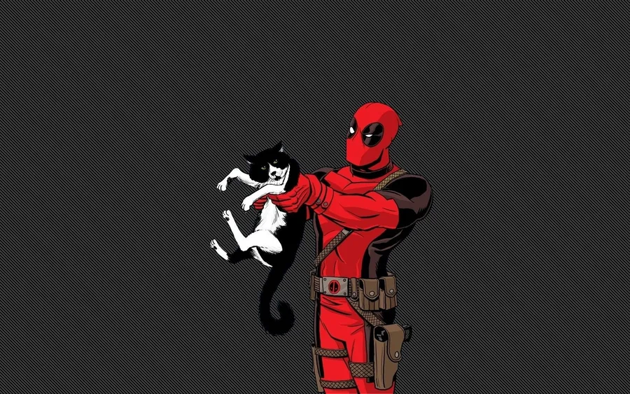 Funny Deadpool Holding A Cat Wallpaper -
