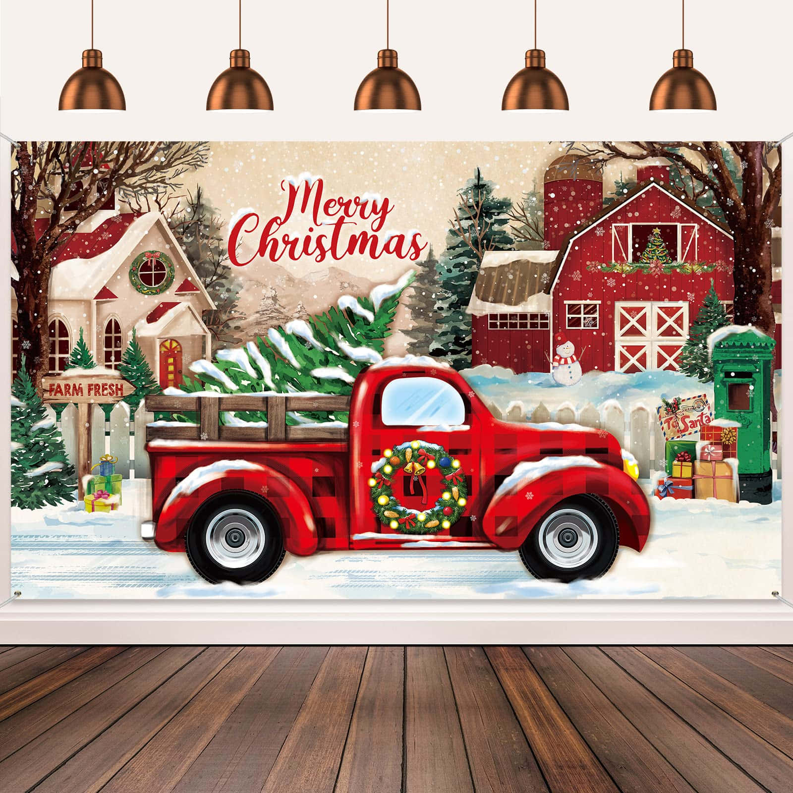 Step Into Christmas By Decorating With A Vintage Truck Wallpaper -